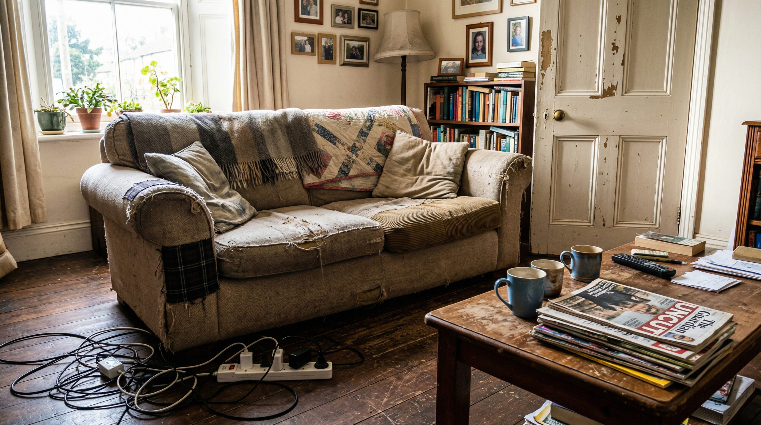 3. Հին բազմոց՝ մաշված ծածկոցով կամ լաքաներով